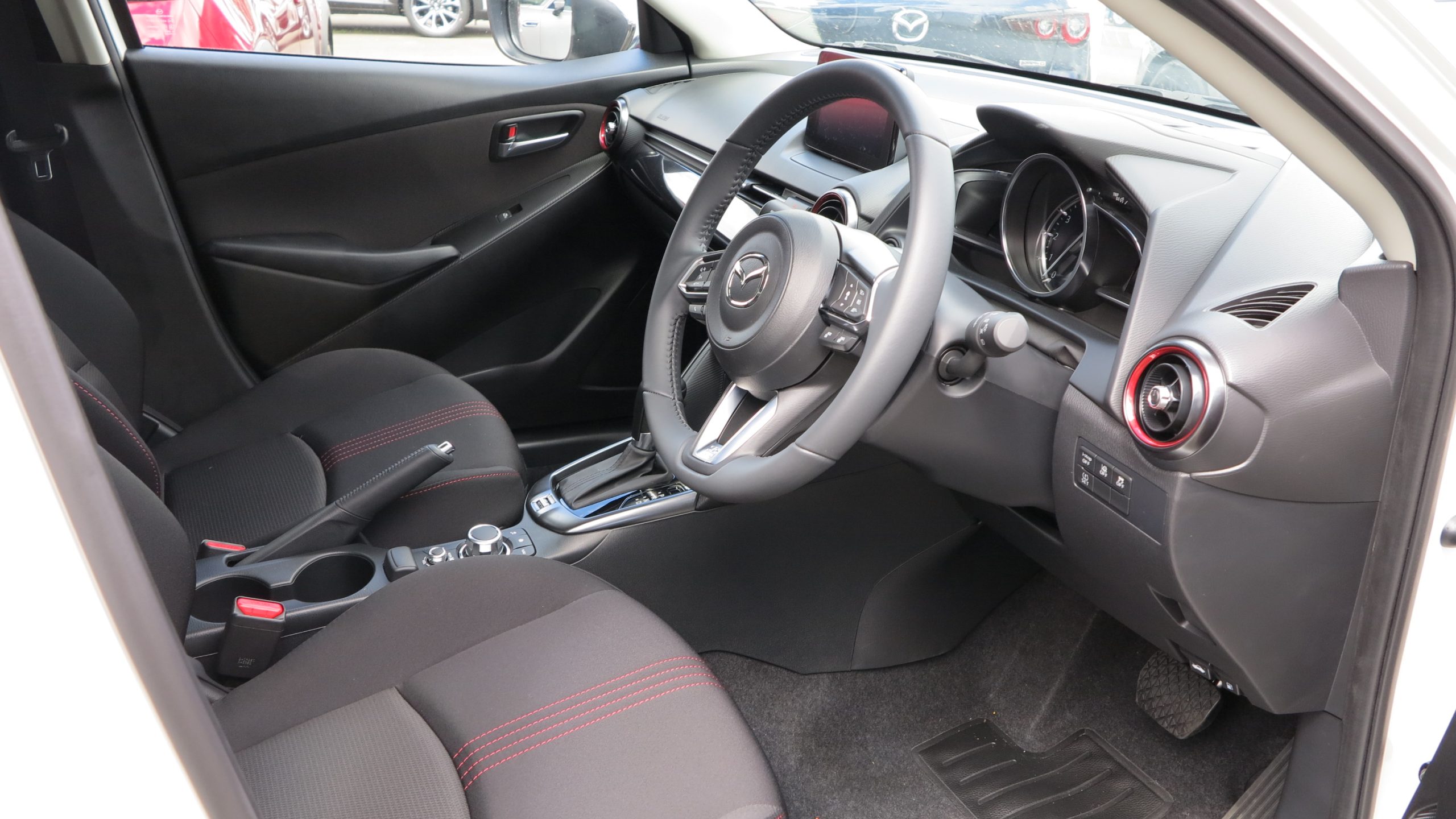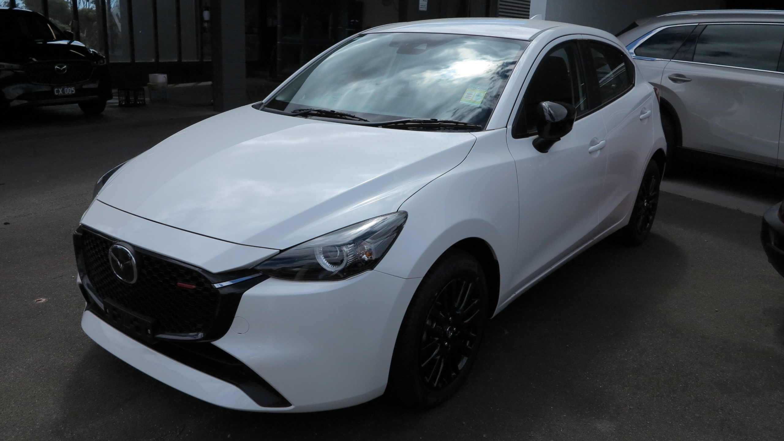 Brand new and on the lot ready for immediate delivery, Mazda 2 Evolve in Snowflake White Pearl!