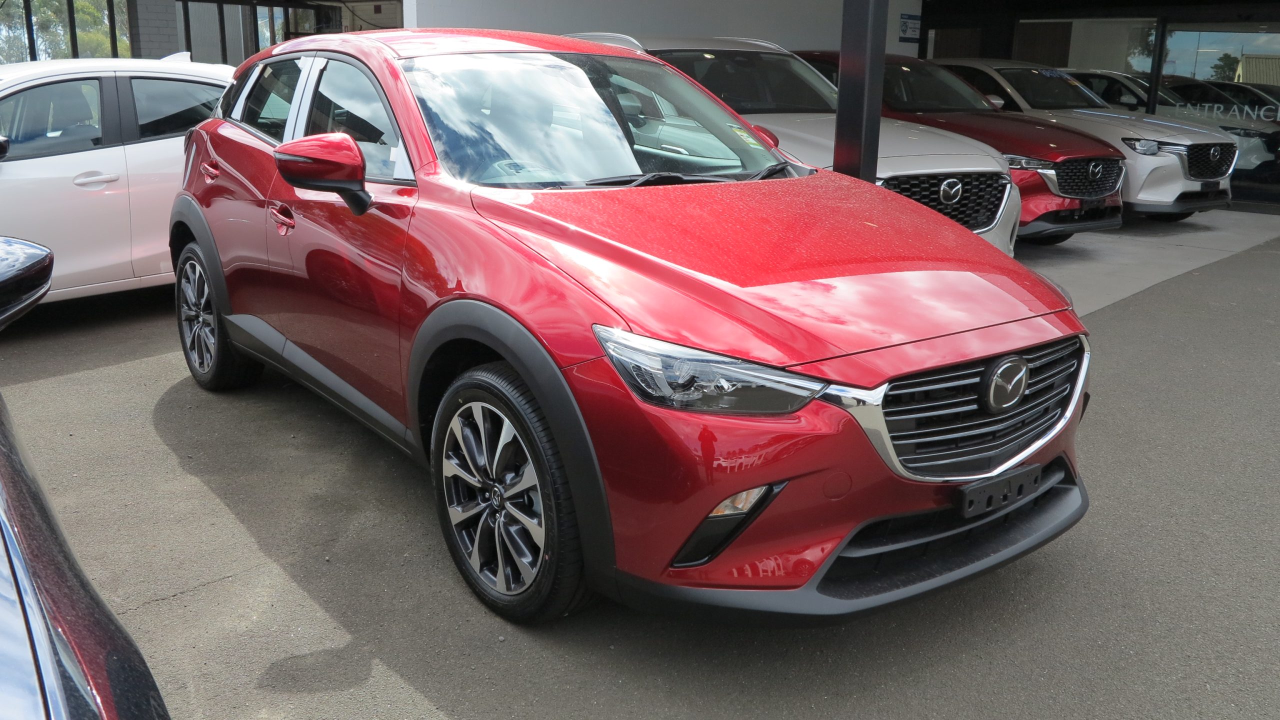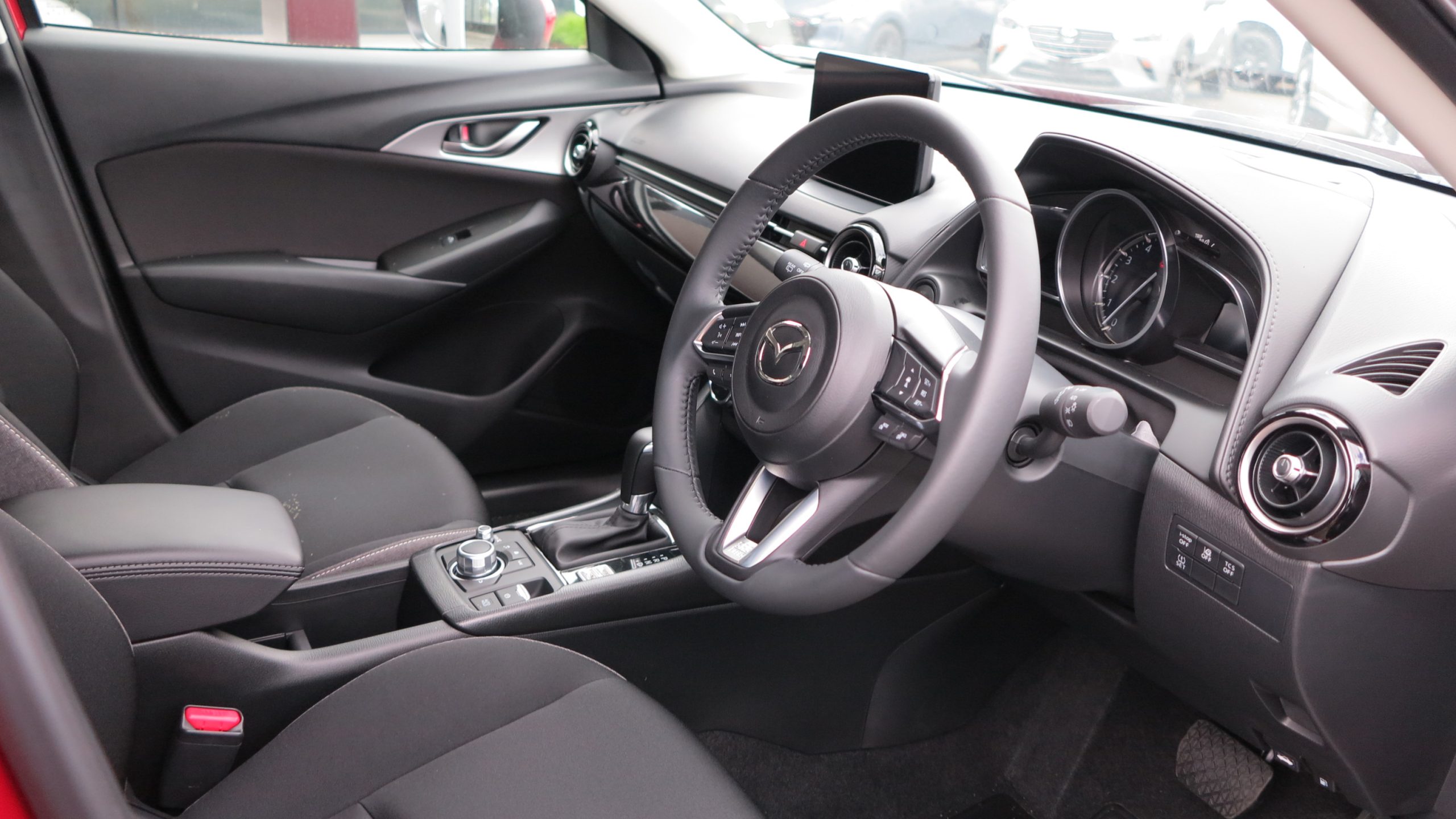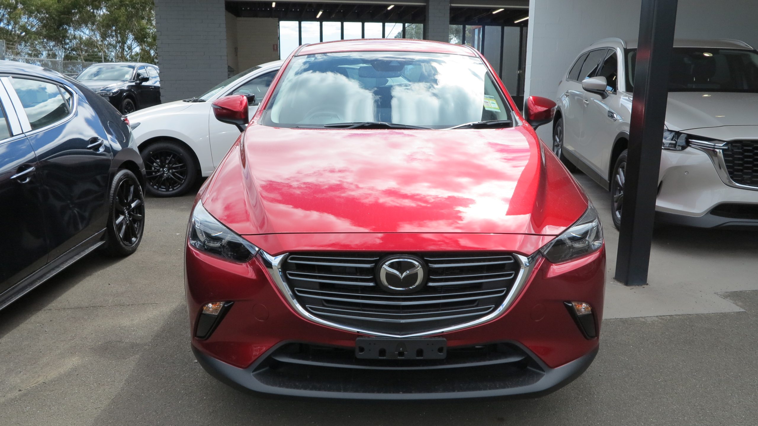 Brand new and on the lot ready for immediate delivery, Mazda CX-3 Pure in premium paint Soul Red Crystal!