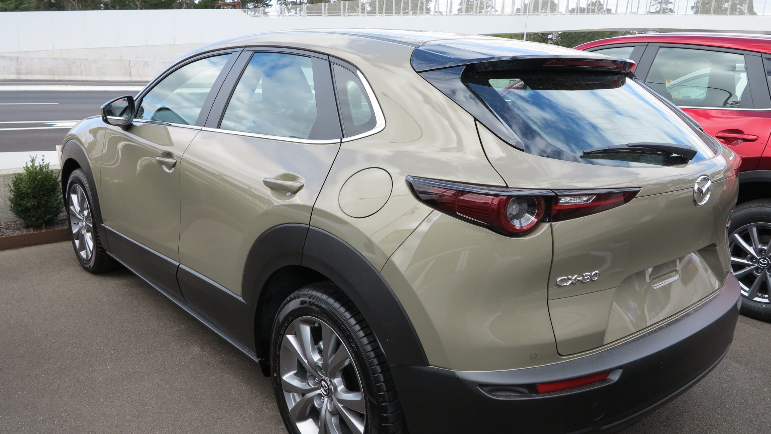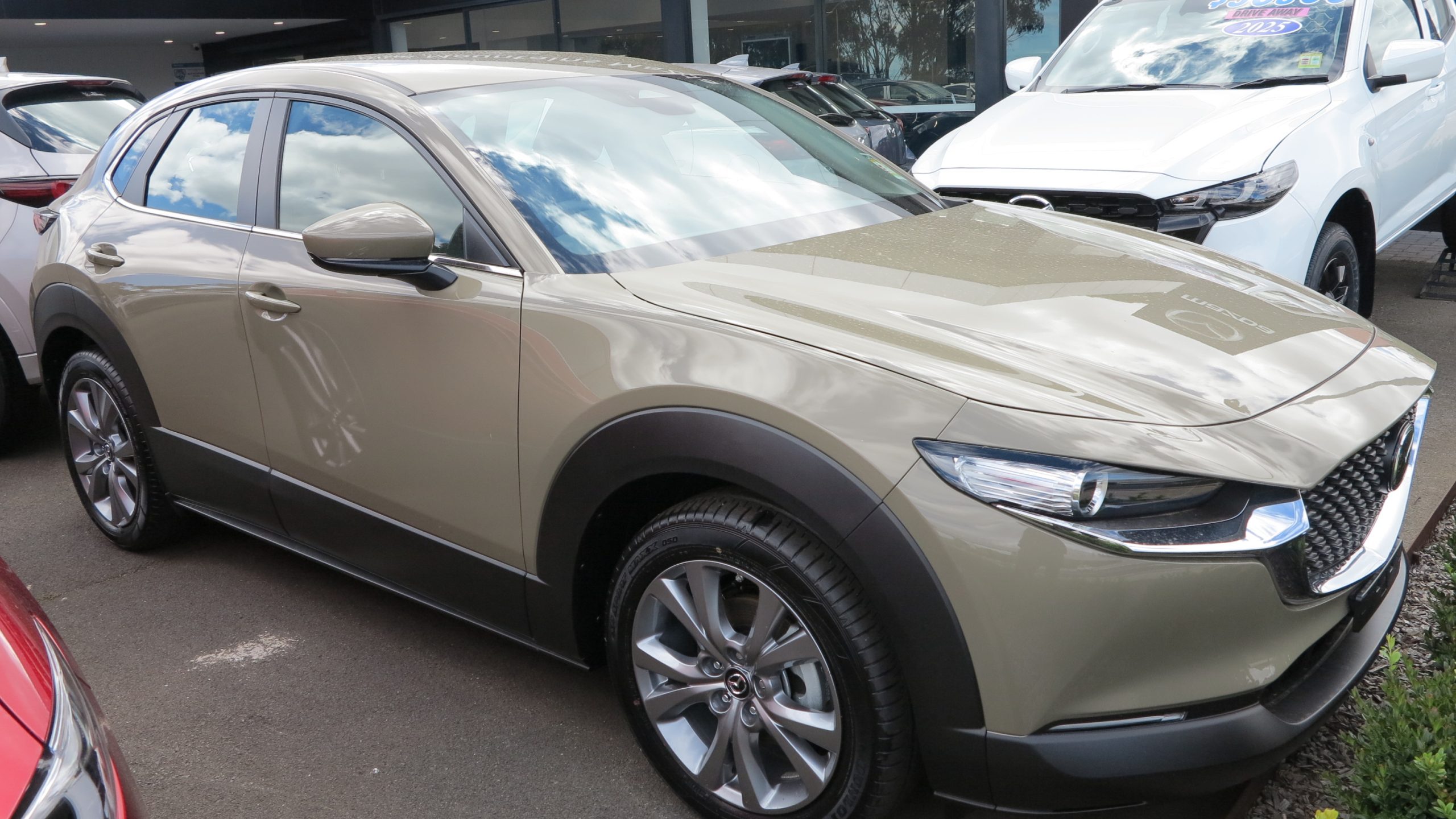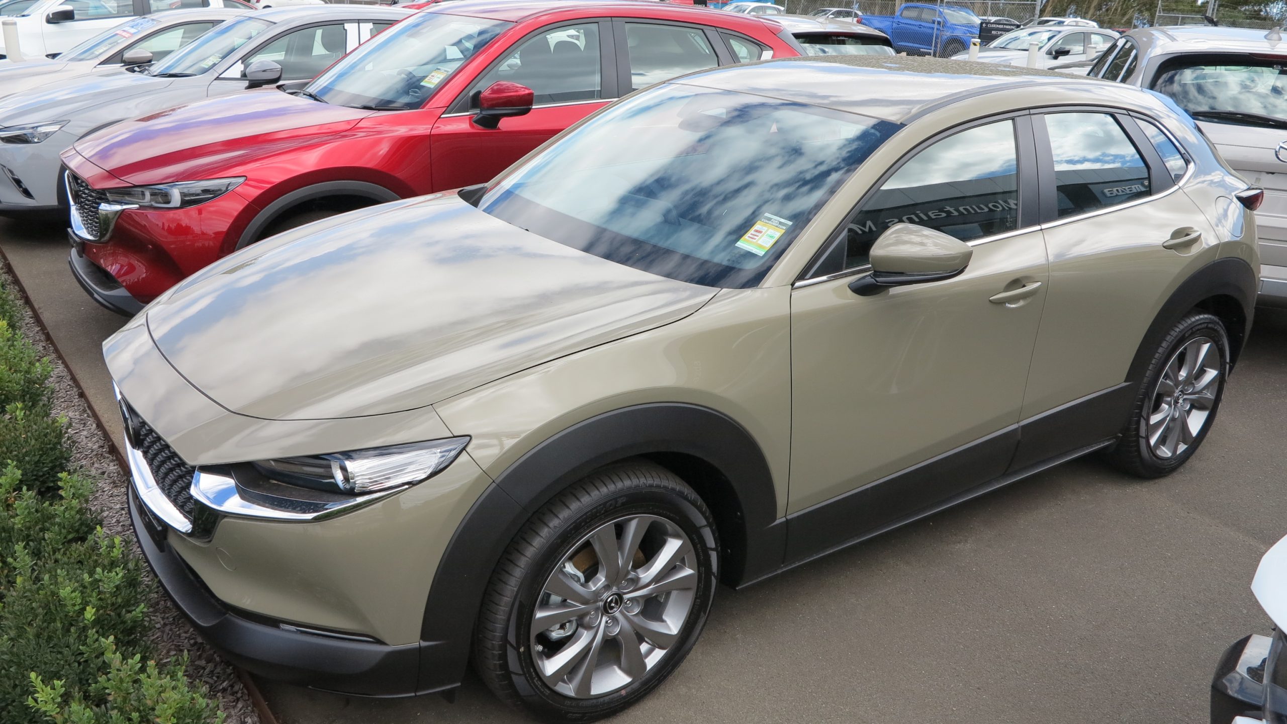 Brand new and on the lot ready for immediate delivery, Mazda CX-30 Evolve in premium paint Zircon Sand!