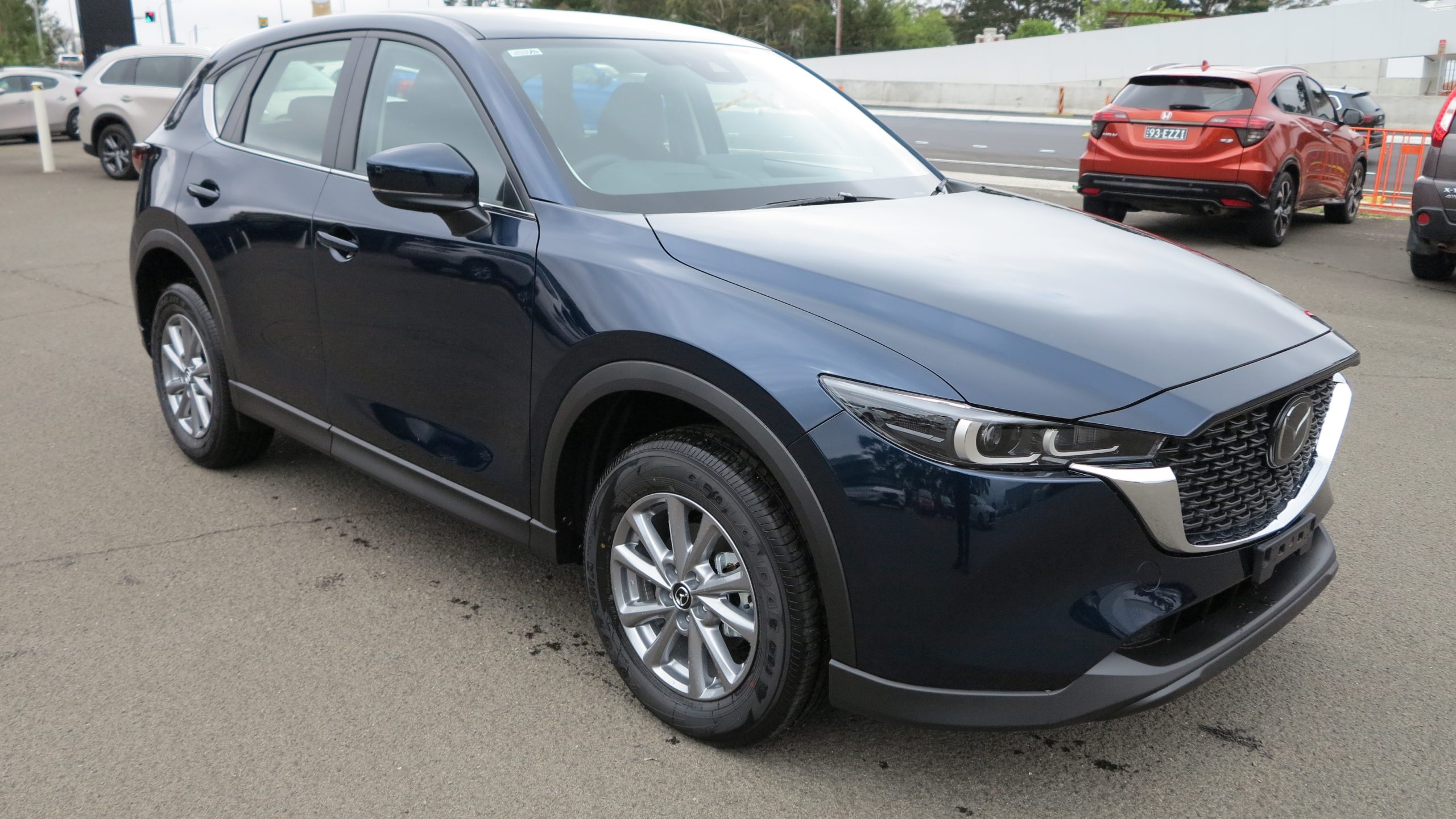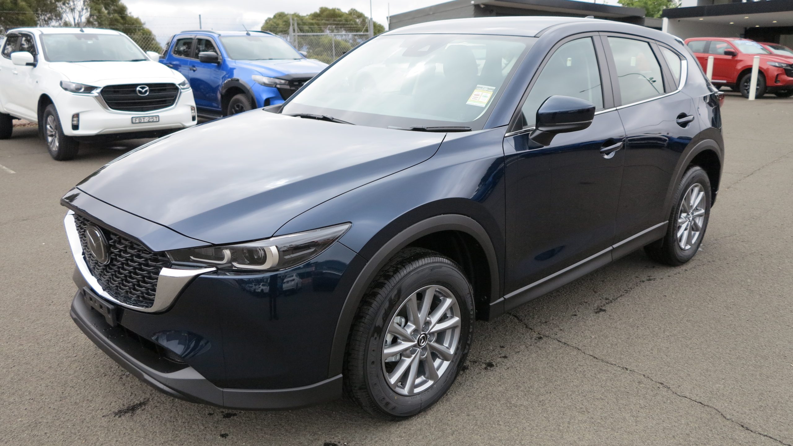 Brand new and on the lot ready for immediate delivery, Mazda CX-5 Maxx in Deep Crystal Blue!
