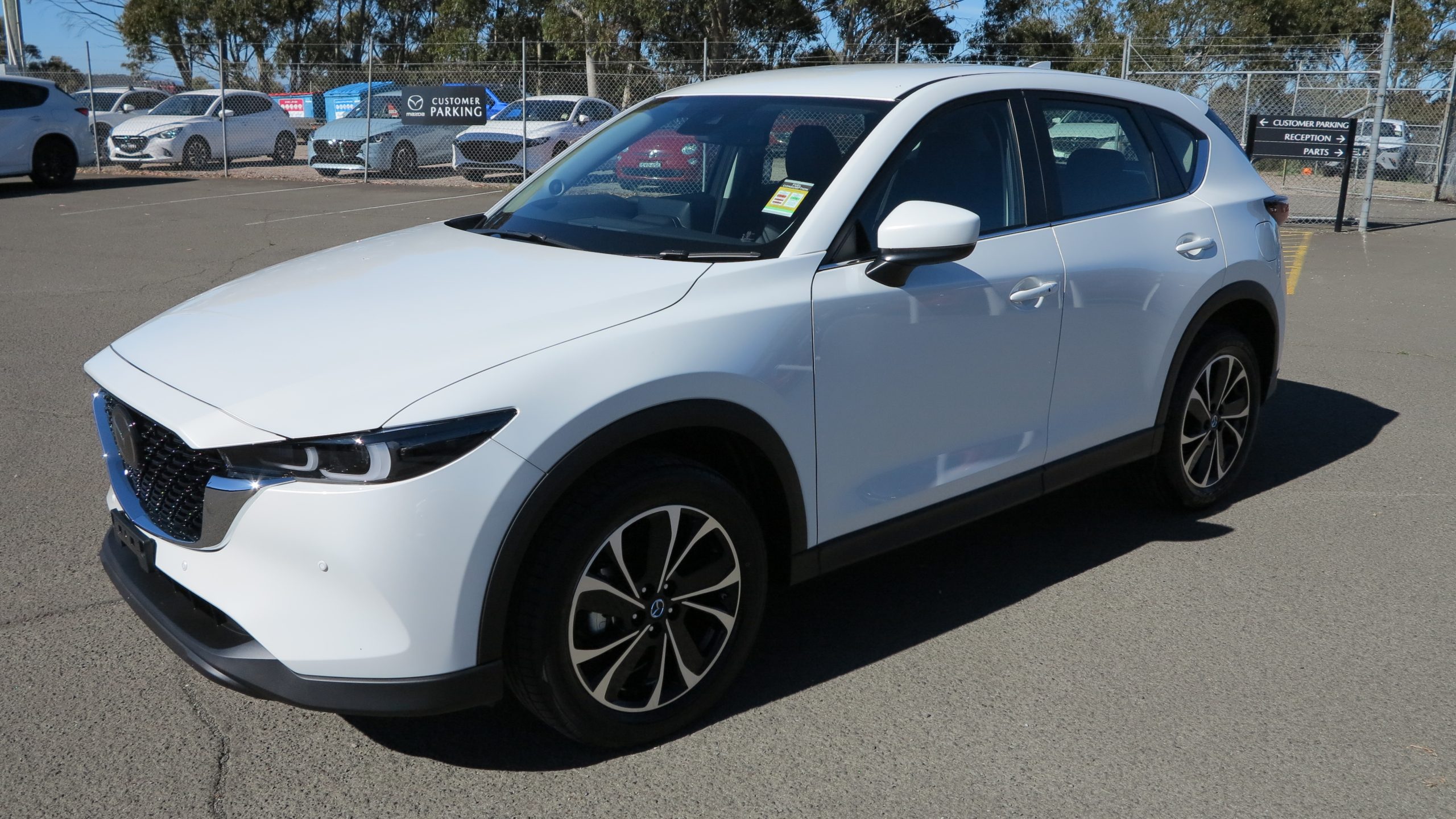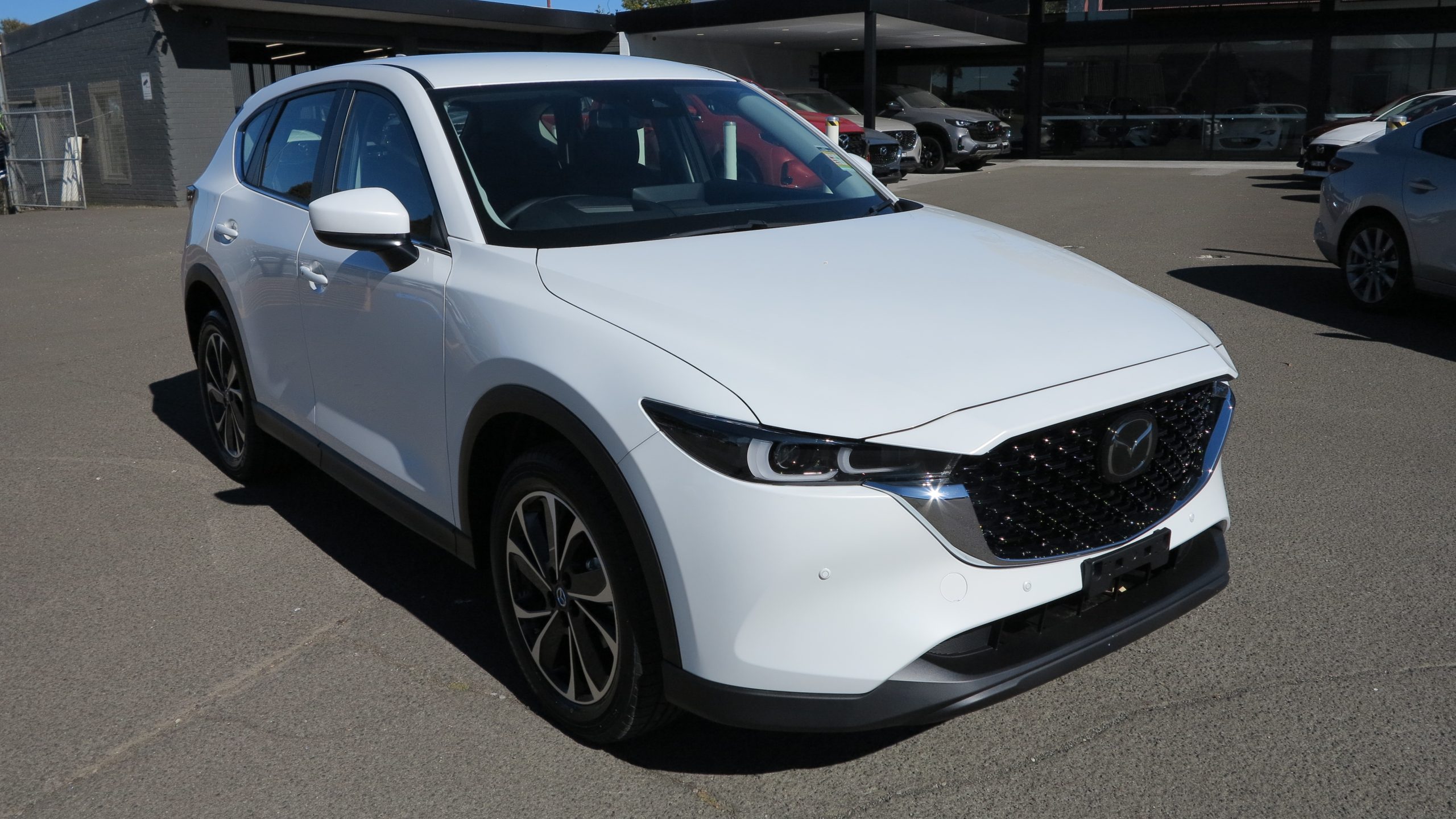 Brand new and on the lot ready for immediate delivery, Mazda CX-5 Touring All Wheel Drive in Rhodium White Metallic!